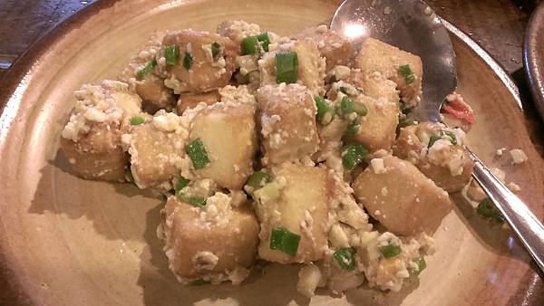 黃金豆腐: 豆腐軟嫩, 加入鹹蛋拌炒, 令人一口接一口!