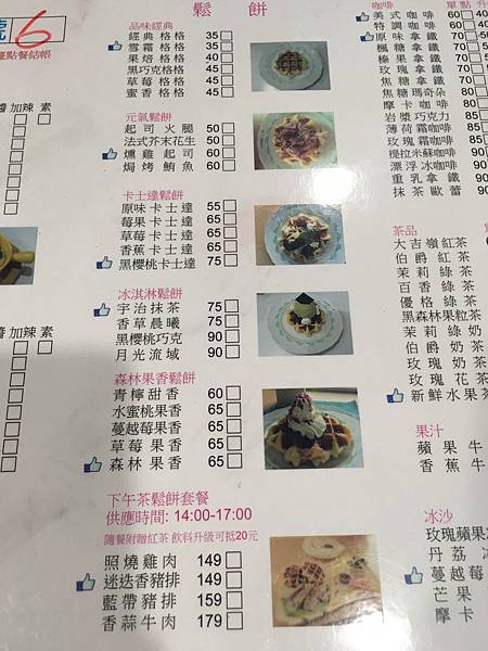 菜單: 價位算是蠻平價的, 比利時鬆餅也只要 35 元起跳, 很經濟實惠
