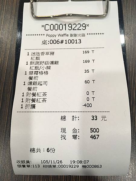 今天3人來用餐共 433元 (用400元餐券) , 平均一人 145元左右, 算很平價了! 我想如果頭份想吃比利時鬆餅可以來這試試.