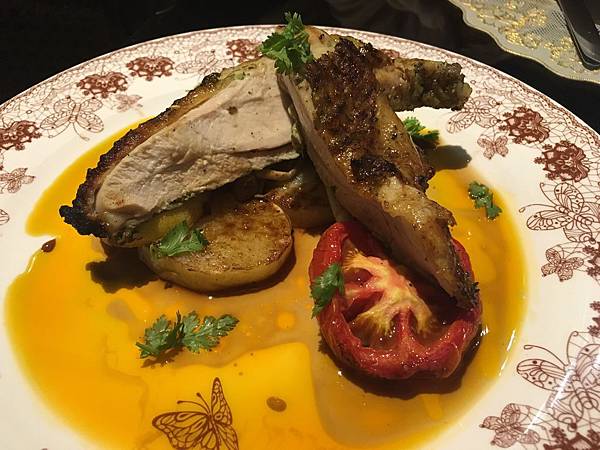 爐烤獵人風香料春雞與碳烤檸檬與辣味芫荽青醬 $1480 + 10%