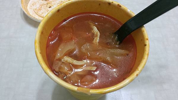 蔬菜濃湯: 喝起來偏酸,跟一般義式餐廳的蔬菜湯口感差不多,唯一不同的是,竟然有加雞肉絲!!
