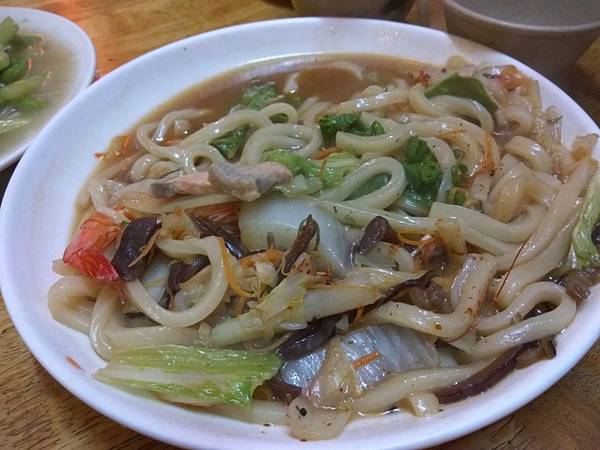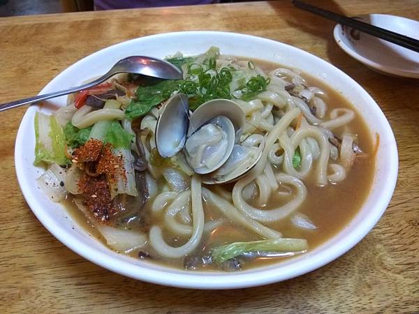 炒海鮮烏龍麵: 有一隻蝦, 一小片鮭魚 (竟然是在這道菜才吃到!!) 還有二個蛤蜊, 麵是QQ的口感~~ 炒的口味~~~個人覺得普通, 沒那麼愛