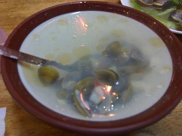 蜆仔蒜湯: 蜆仔很小, 肉有點難咬出來, 跟媽媽買回來煮的大小有差. 有加酒, 所以個人不愛這道湯~沒有喝完~~