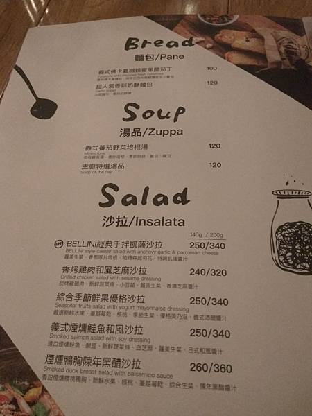 麵包/湯品/沙拉菜單: