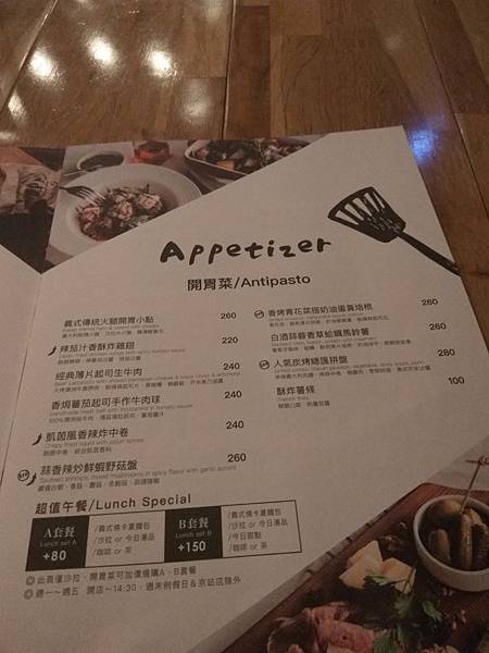 以下是部份的菜單: