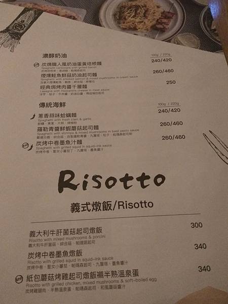 義式燉飯菜單: