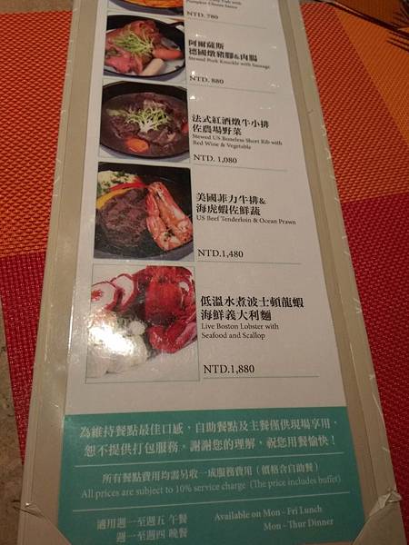 這是菜單: 單點主菜, 其它buffet吃到飽的方式