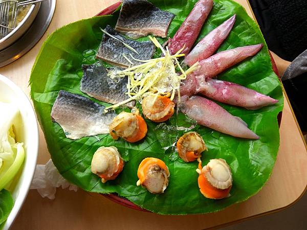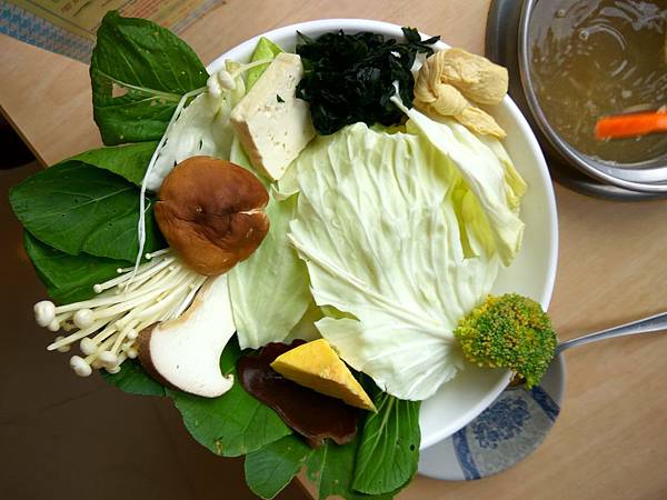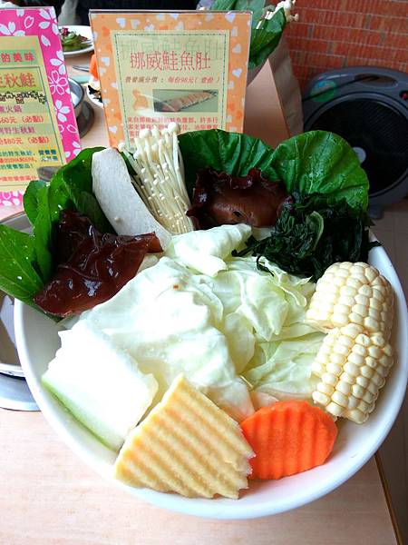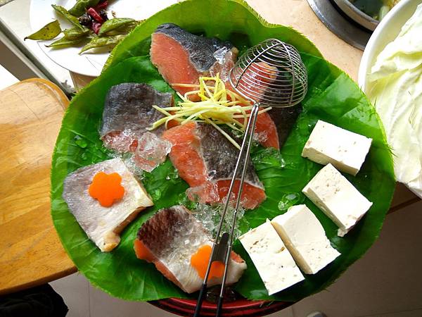 鮭魚鍋的菜盤 (仔細看了一下, 跟三鮮鍋的有些微的不同)