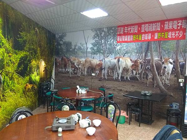 牆壁貼滿牛牛的照片, 感覺似乎是自己有農場??