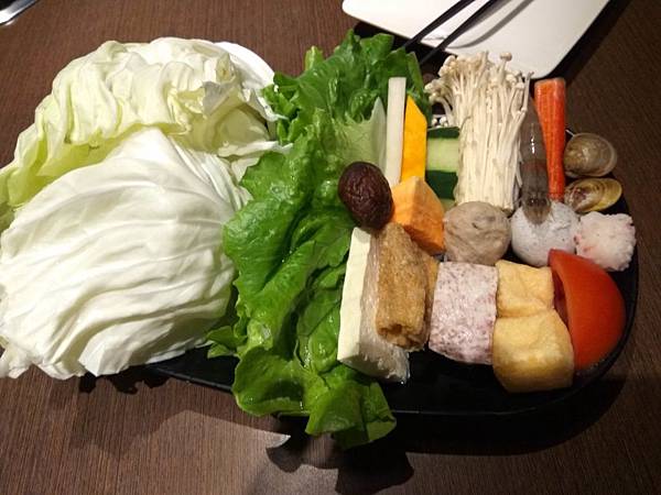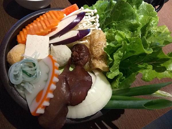 菜盤近照, 有茄子, 是一般火鍋/壽喜燒鍋較少見的食材