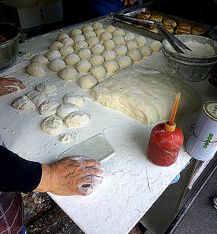早上當場現揉麵團, 邊做邊賣, 現做就是好吃啊~~