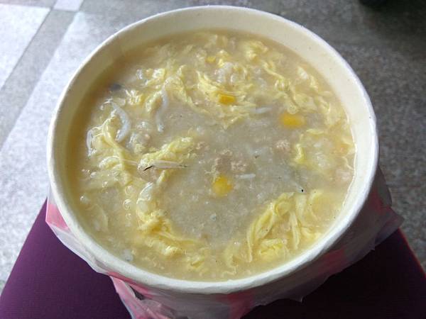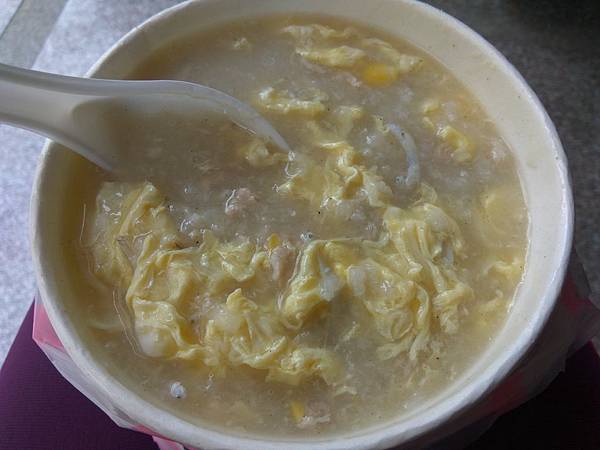 這是內用的豬肉玉米粥, 一樣是蛋花多,湯頭棒!
