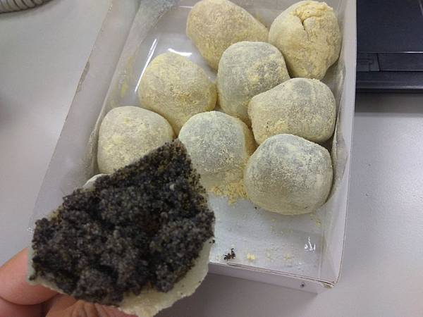 這是芝麻口味, 是我的最愛, 芝麻粉很多喔~~~ 多到一咬開就滿出來了啦